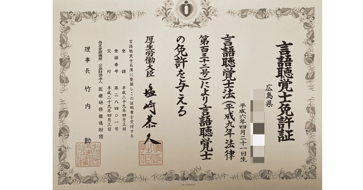 2018年の23歳で「言語聴覚士」を取得し、リハビリテーション職として9年間働いていました。